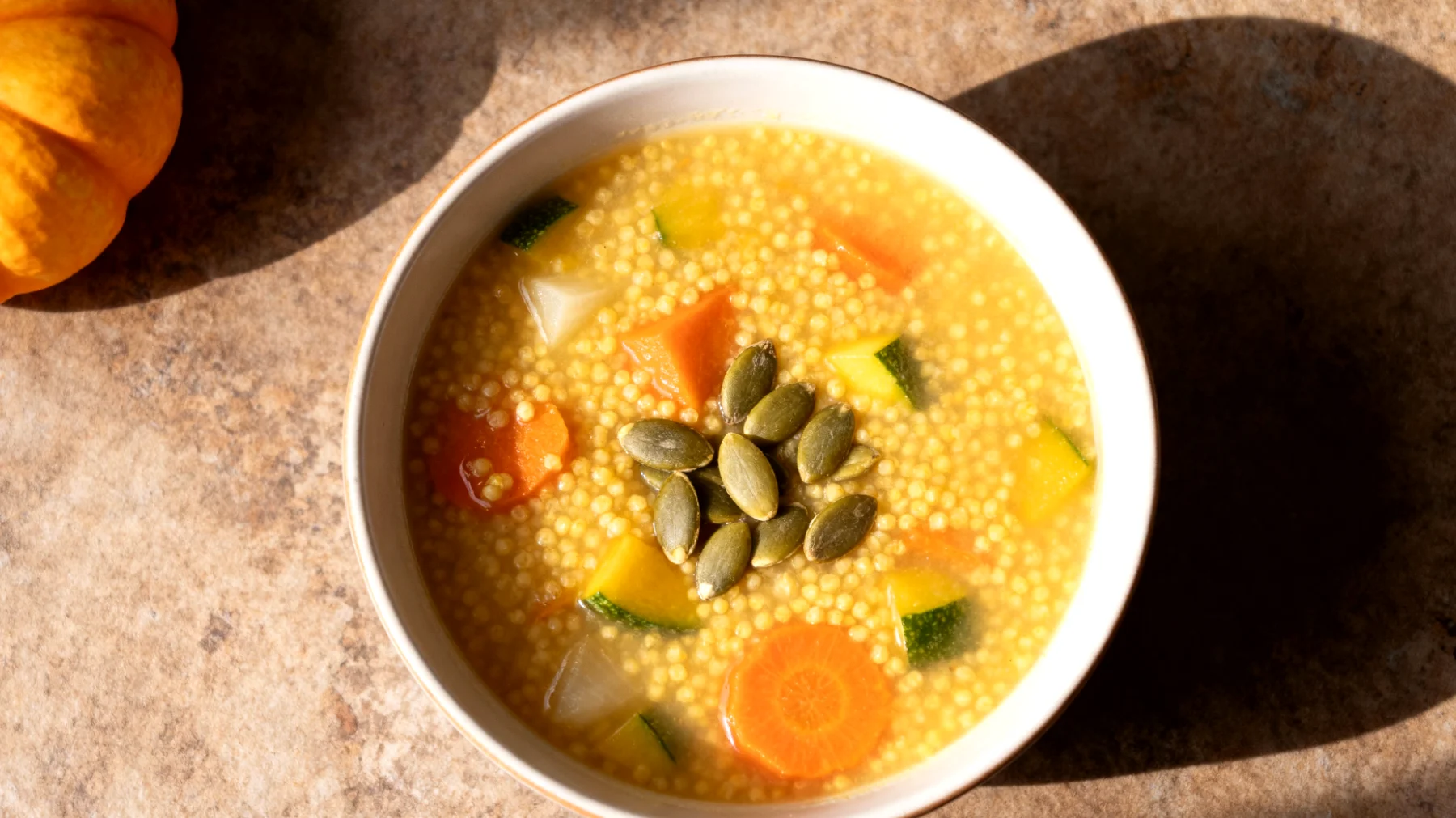La composizione nutrizionale di questa zuppa la rende ideale per la cena. I carboidrati complessi del miglio favoriscono una produzione di energia stabile che supporta il benessere generale, mentre il magnesio, presente sia nel cereale che nei semi di zucca, contribuisce al rilassamento muscolare e nervoso, aspetto particolarmente apprezzato dopo giornate stressanti.